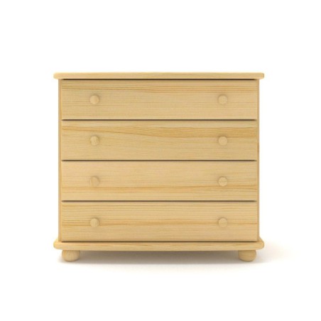 Klasyczna drewniana komoda sosnowa z czterema dużymi szufladami, wykonana z litego drewna sosnowego.