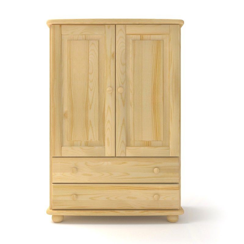 Klasyczna bieliźniarka sosnowa z dwiema podwójnymi szufladami w dolnej części oraz parą drzwi z półką, wykonana z litego drewna sosnowego.