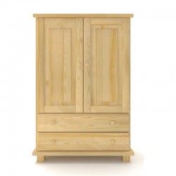 Nowoczesna drewniana bieliźniarka sosnowa z dwiema podwójnymi szufladami w dolnej części oraz parą drzwi z półką, wykonana z litego drewna sosnowego.