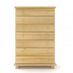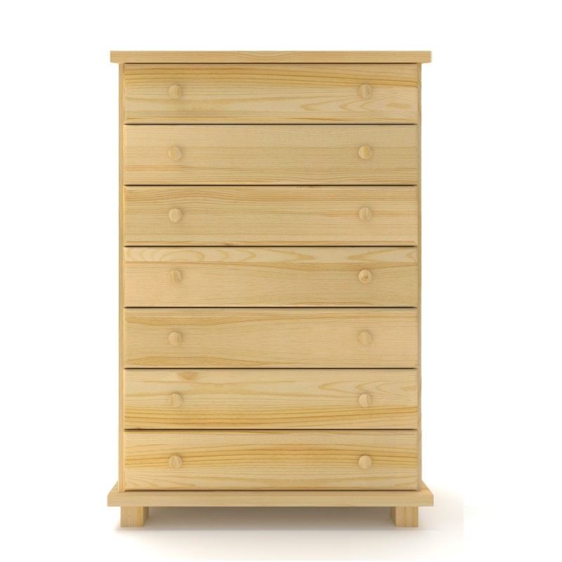 Nowoczesna drewniana bieliźniarka sosnowa z siedmioma dużymi, pojemnymi szufladami wykonana z litego drewna sosnowego.