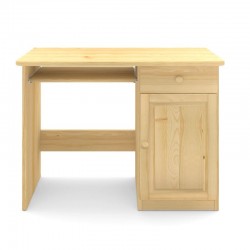 Klasyczne drewniane biurko wyposażone w szufladę oraz szafkę po prawej stronie wykonane z litego drewna sosnowego.