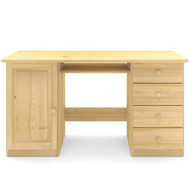 Klasyczne duże drewniane biurko wyposażone w cztery praktyczne szuflady po prawej stronie oraz szafkę z półką, wykonane z litego drewna sosnowego.