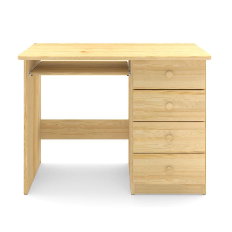 Klasyczne drewniane biurko sosnowe z głębszym blatem wyposażone w cztery szuflady po prawej stronie, wykonane z litego drewna sosnowego.