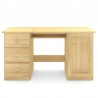 Klasyczne duże drewniane biurko sosnowe z blatem o głębokości 55 cm, wyposażone w trzy pojemne szuflady po lewej stronie oraz szafkę z półką, wykonane z litego drewna sosnowego.