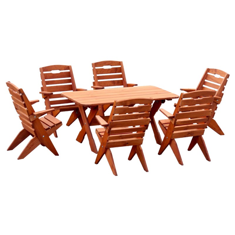 Drewniany zestaw ogrodowy - stół prostokątny oraz sześć składanych krzeseł z litego drewna sosnowego.