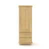 Klasyczna wąska i wysoka komoda sosnowa z szufladami w dolnej części i drzwiczkami z półką, wykonana z litego drewna sosnowego.