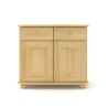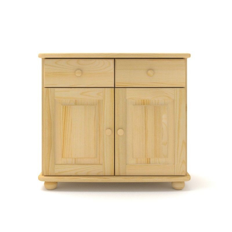 Klasyczna drewniana komoda sosnowa z dwiema szufladami i podwójnymi drzwiami z półką, wykonana z litego drewna sosnowego.