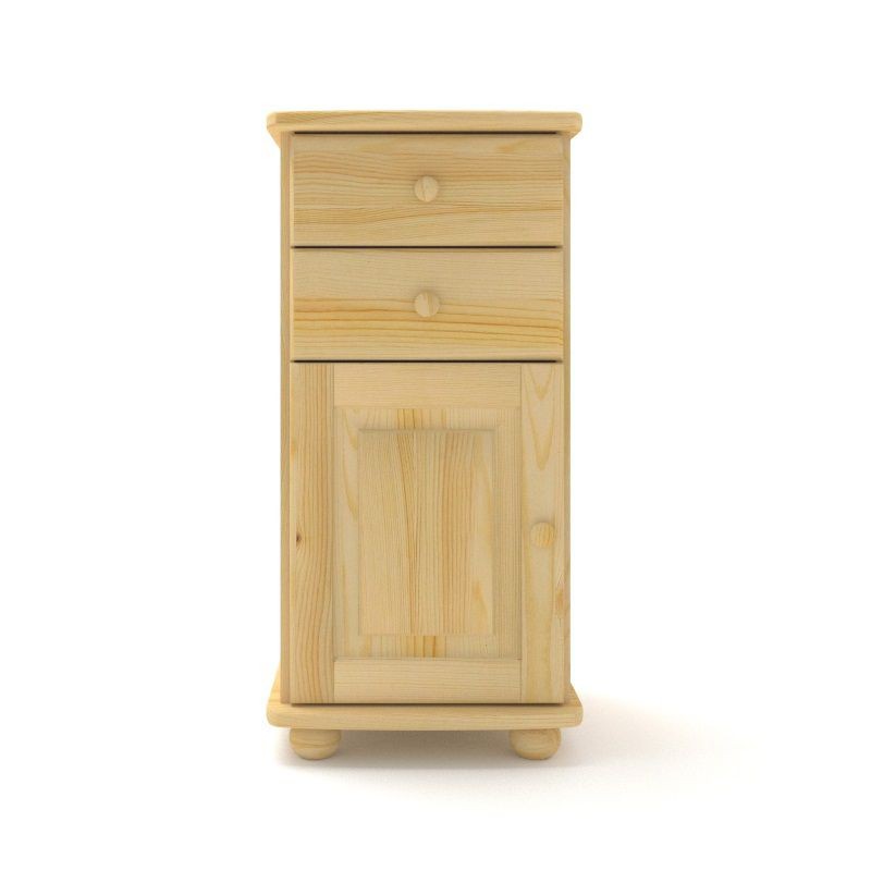 Komoda sosnowa w podstawowej wersji wykończona jest podwójną warstwą najwyższej jakości półmatowych, bezbarwnych lakierów, podkreślających naturalną strukturę i barwę drewna sosnowego.