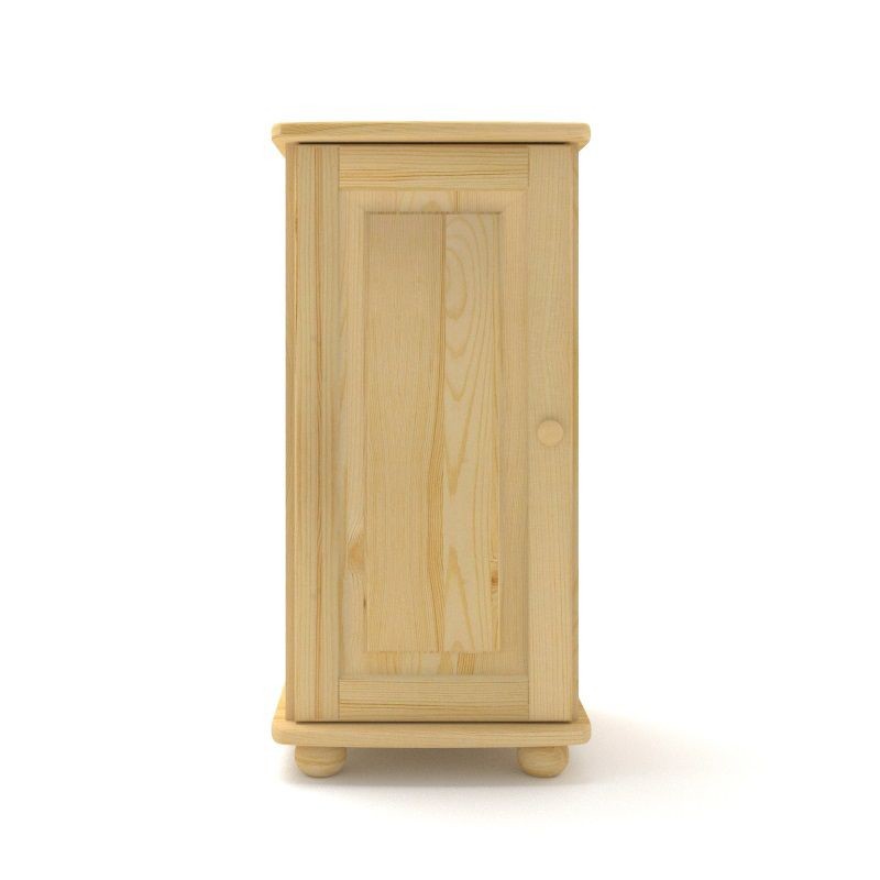 Klasyczna wąska pojedyncza komoda sosnowa z drzwiczkami i jedną półką na środku, wykonana z litego drewna sosnowego.