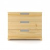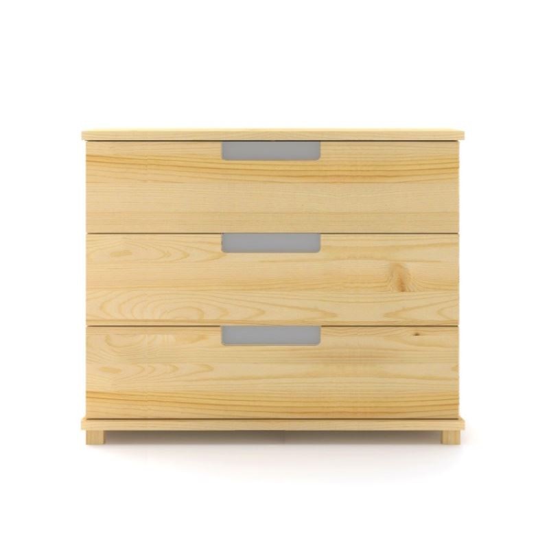 Nowoczesna drewniana komoda sosnowa z trzema dużymi szufladami i szklanymi uchwytami, wykonana z litego drewna sosnowego.