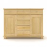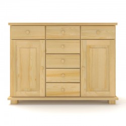 Komoda sosnowa K17-K w podstawowej wersji wykończona jest podwójną warstwą najwyższej jakości półmatowych, bezbarwnych lakierów, podkreślających naturalną strukturę i barwę drewna sosnowego.