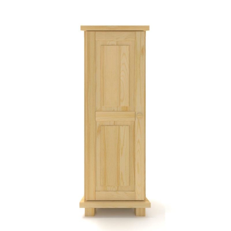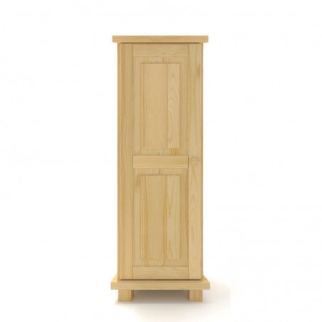 Nowoczesna, wąska 1-drzwiczkowa drewniana komoda sosnowa z dwiema półkami, wykonana z litego drewna sosnowego.