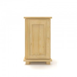 Nowoczesna, wąska drewniana 1-drzwiczkowa komoda z blatem w ostry kant, z litego drewna sosnowego.