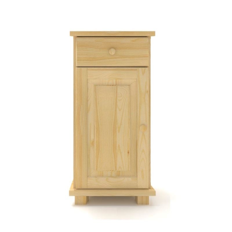 Nowoczesna, wąska drewniana komoda z litego drewna sosnowego. 1 mała szuflada + drzwiczki z półką.
