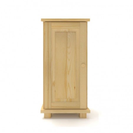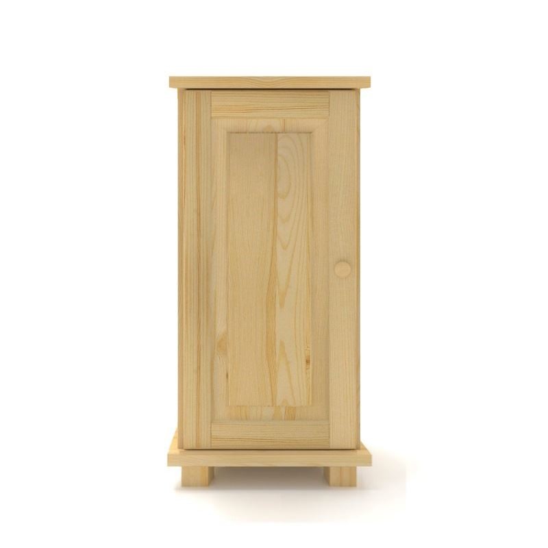 Nowoczesna, wąska 1-drzwiowa pojedyncza komoda z litego drewna sosnowego.