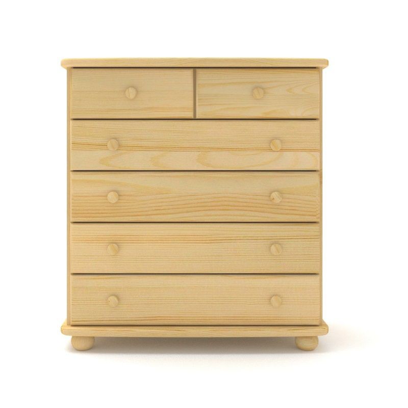 Komoda sosnowa K06 w podstawowej wersji wykończona jest podwójną warstwą najwyższej jakości półmatowych, bezbarwnych lakierów, podkreślających naturalną strukturę i barwę drewna sosnowego.