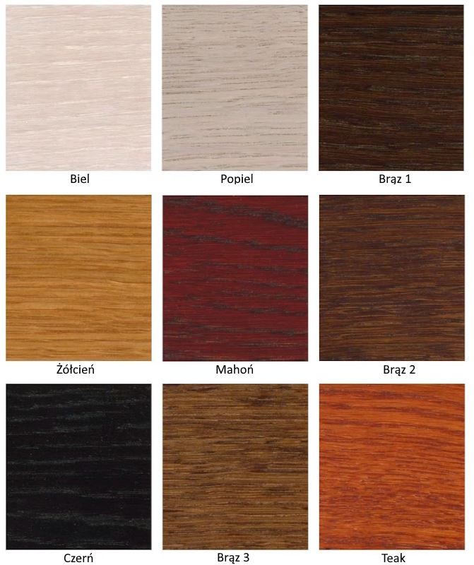 Opcjonalnie istnieje możliwość zmiany wybarwienia na kolor z palety widocznej na zdjęciu produktowym lub zamówienia mebla w stanie surowym. W takim wypadku prosimy o komentarz w zamówieniu z symbolem wybranego koloru.