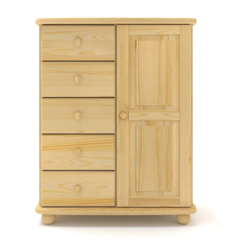 Praktyczna komoda pojemna z litego drewna sosnowego. 5 bardzo pojemnych szuflad o zwiększonych wymiarach + drzwiczki.