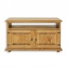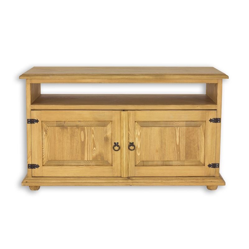 Rustykalna klasyczna komoda sosnowa RTVW 01 z dwoma drzwiczkami oraz otwartą półką, wykonana z litego drewna sosnowego.