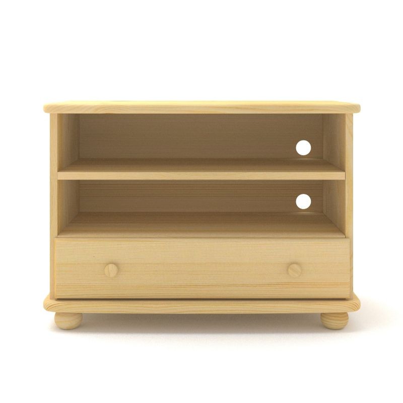 Drewniana komoda sosnowa RTV 01 jest idealnym rozwiązaniem jako mebel pod telewizor na sprzęt elektroniczny. Niewielkie wymiary wraz z szufladą oraz dwiema wnękami powoduje, że jest to bardzo praktyczny mebel. Zmieści nie tylko dekoder i konsolę, a również płyty lub inne drobne przedmioty.