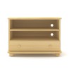Praktyczna drewniana komoda - szafka RTV z jedną szufladą i dwiema wnękami na sprzęt, wykonana z litego drewna sosnowego