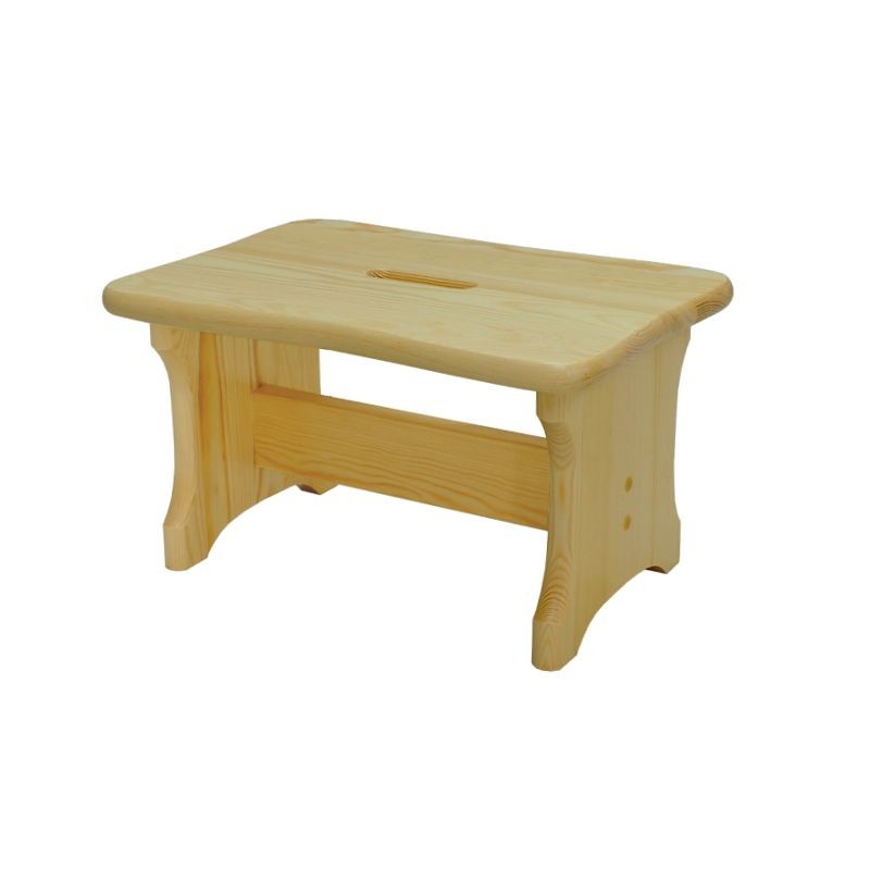 Niski taboret sosnowy TIGAN wykonany z litego drewna sosnowego.