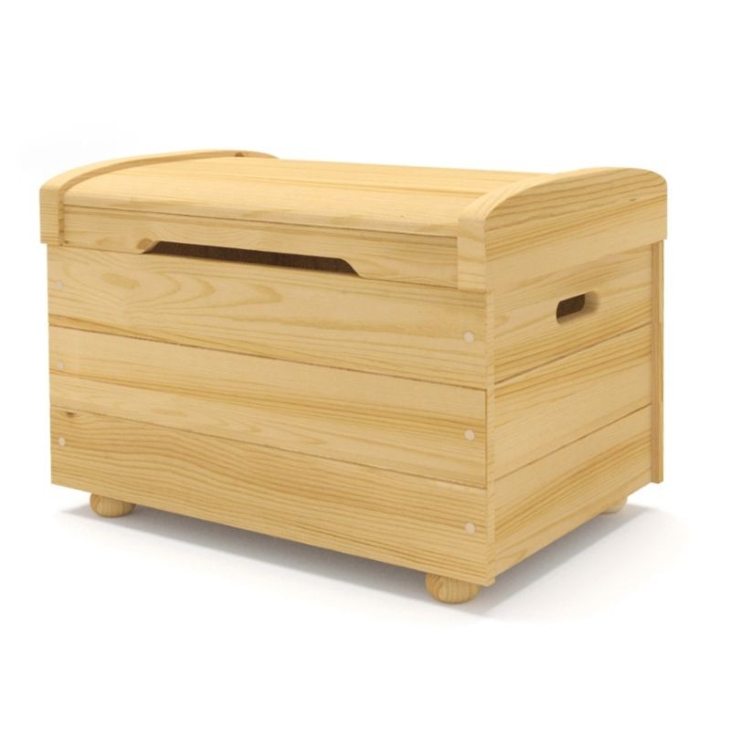 Drewniany kufer sosnowy z otwieranym wiekiem, wykonany z litego drewna sosnowego, dostępny w dwóch wymiarach.