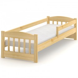 Klasyczne drewniane łóżko dziecięce z barierką i szczebelkami, wykonane z litego drewna sosnowego pod rozmiar materaca80x180 cm.