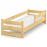 Klasyczne drewniane łóżko dziecięce z barierką zabezpieczającą o rozmiarze 70x140 cm, wykonane z litego drewna sosnowego.
