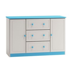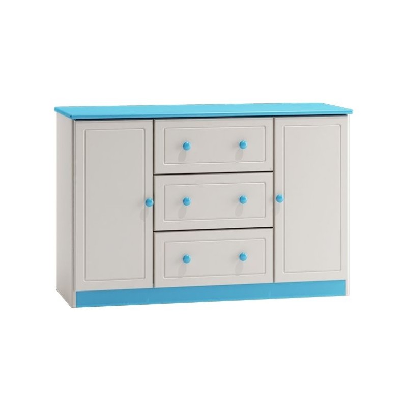 Dziecięca komoda z 3 szufladami i drzwiczkami po obu stronach z litego drewna sosnowego.