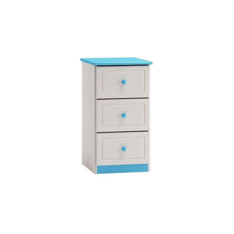 Wąska dziecięca komoda z 3 szufladami wykonana z litego drewna sosnowego.