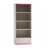 Dziecięcy biały regał sosnowy z czterema półkami i jedną szufladą wykonany z litego drewna sosnowego.