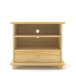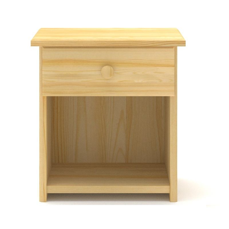 Drewniana szafka nocna sosnowa z jedną szufladą i wnęką, wykonana z litego drewna sosnowego.