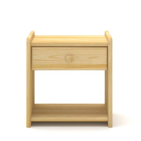 Praktyczna szafka nocna sosnowa z jedną szufladą i wolną przestrzenią wykonana z litego drewna sosnowego.