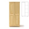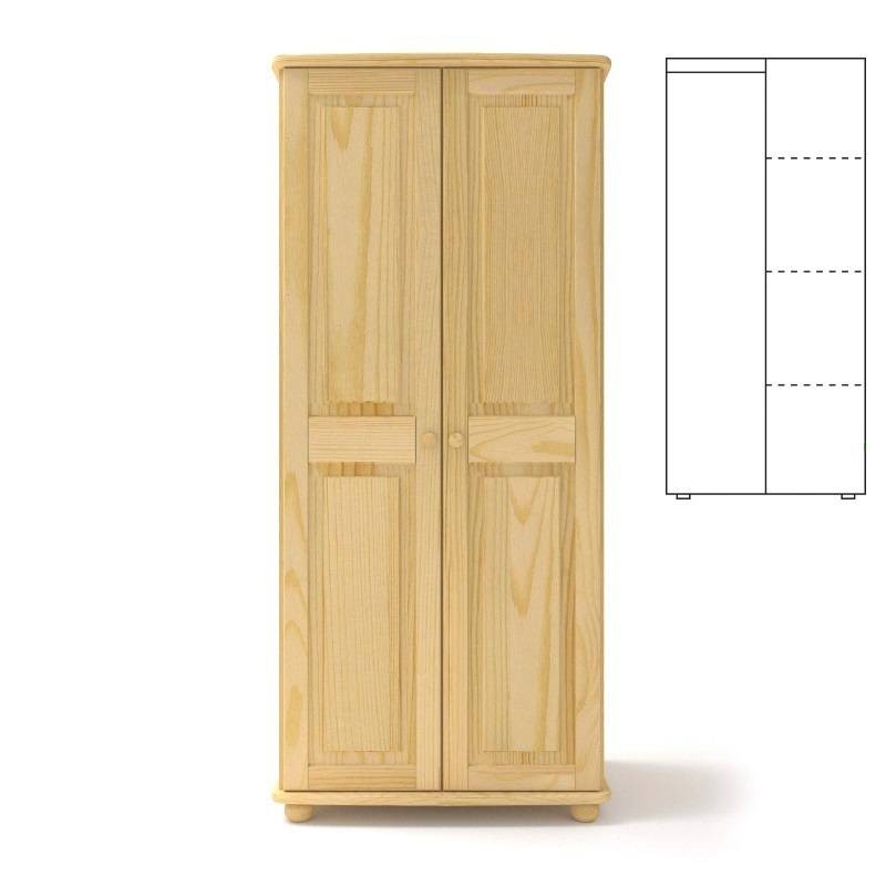 Klasyczna, 2-drzwiowa podwójna szafa sosnowa wyposażona w trzy półki na ubrania i drążek na wieszaki, wykonana z litego drewna sosnowego.