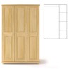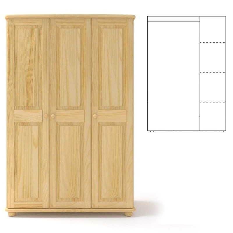 Klasyczna, 3-drzwiowa potrójna szafa sosnowa wyposażona w trzy półki na ubrania oraz drążek na wieszaki za podwójnymi drzwiami, wykonana z litego drewna sosnowego.