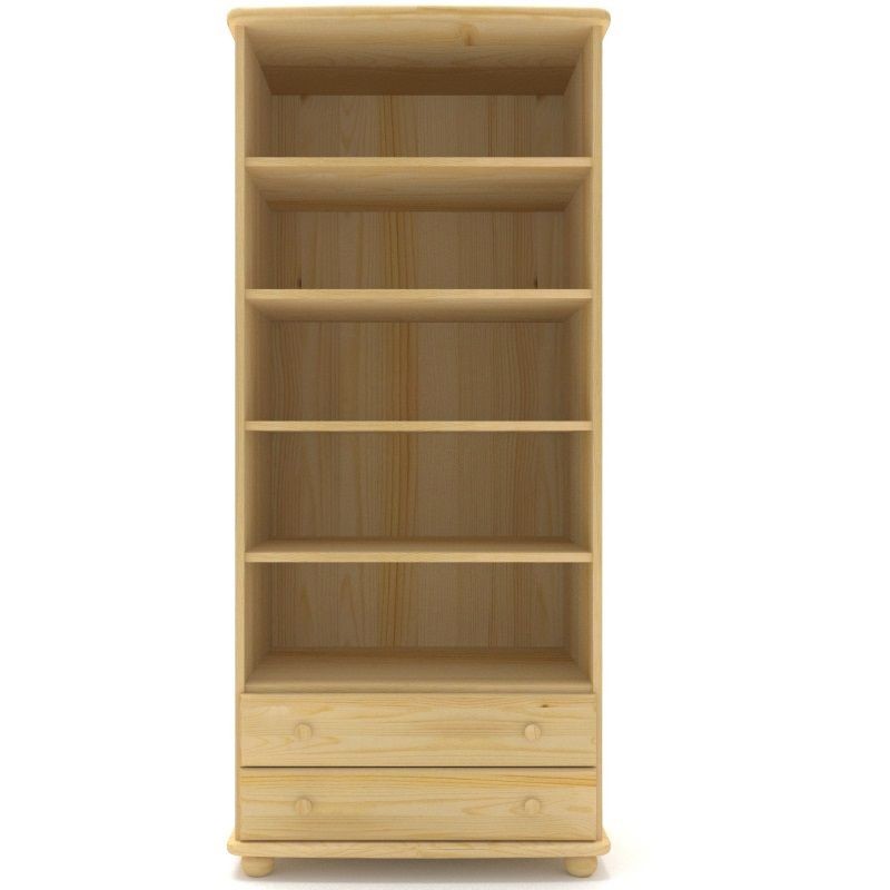 Klasyczny, szeroki regał drewniany z litego drewna sosnowego, z dwiema szufladami.