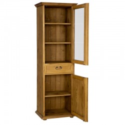 - jedna półka na środku za pełnymi drzwiami w dolnej części witryny.