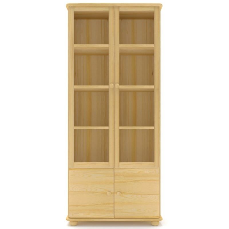 Drewniana witryna sosnowa W9 w podstawowej wersji wykończona jest podwójną warstwą najwyższej jakości półmatowych, bezbarwnych lakierów, podkreślających naturalną strukturę i barwę drewna sosnowego.