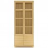 Drewniana, klasyczna podwójna witryna sosnowa z przeszklonymi drzwiami i trzema półkami + para pełnych drzwiczek w dolnej części, wykonana z litego drewna sosnowego.